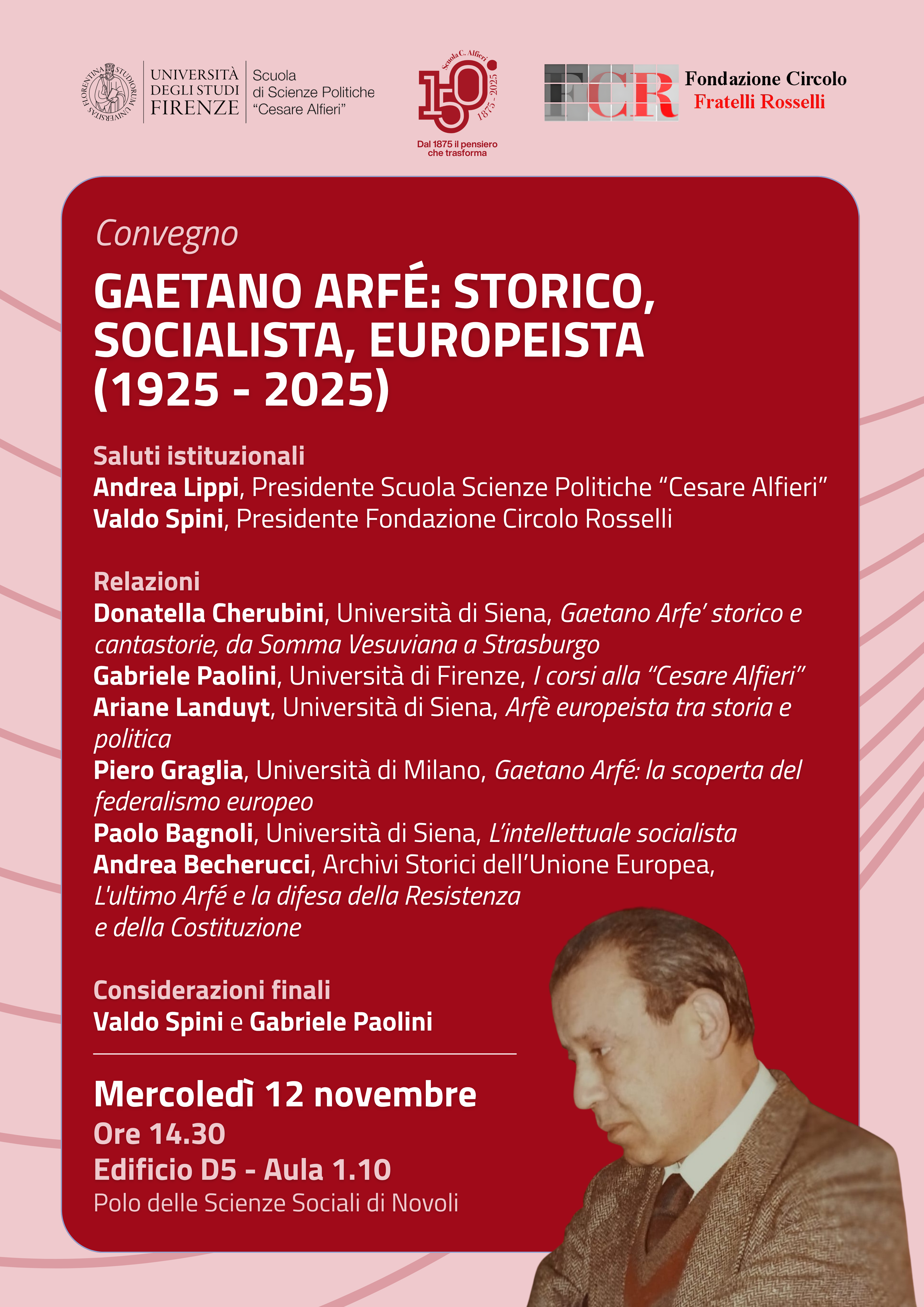 Scuola I 150 anni della Cesare AlfieriUn anniversario, molte iniziativeConvegno "Gaetano Arfé: storico, socialista, europeista (1925-2025)"